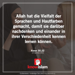 30.22: Und unter Seinen Wundern ist die Schöpfung der Himmel und der Erde und die Vielfalt eurer Zungen und Farben: denn hierin, siehe, sind fürwahr Botschaften für alle, die (angeborenes) Wissen besitzen!